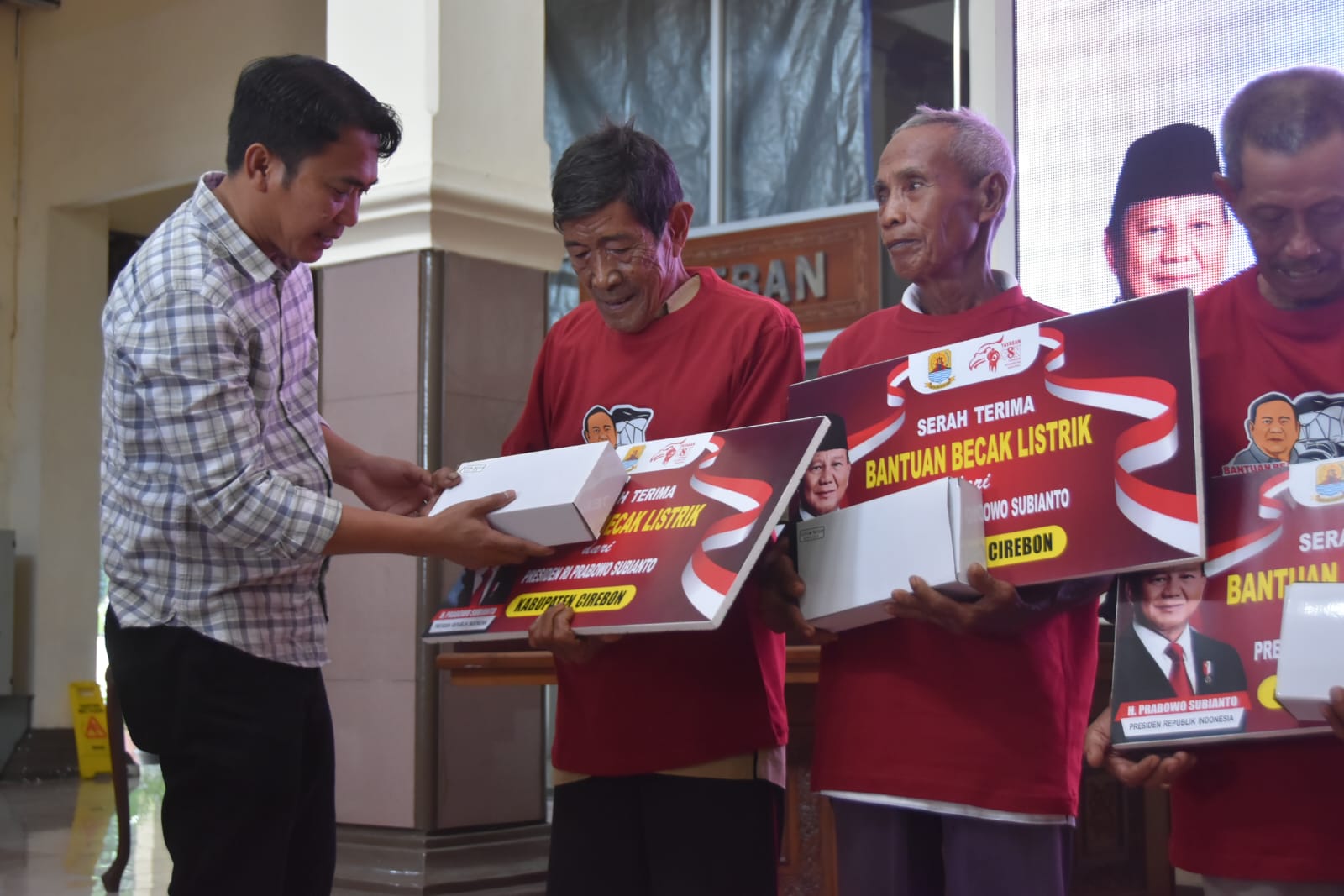 CIREBON- Sebanyak 100 pebecak lanjut usia (lansia) di Kabupaten Cirebon menerima bantuan becak listrik dari Presiden Republik Indonesia, Prabowo Subianto. Bantuan tersebut disalurkan melalui Yayasan Gerakan Solidaritas Indonesia dan diserahkan oleh Wakil Bupati Cirebon, H. Agus Kurniawan Budiman, Minggu, (7/12/2025).
