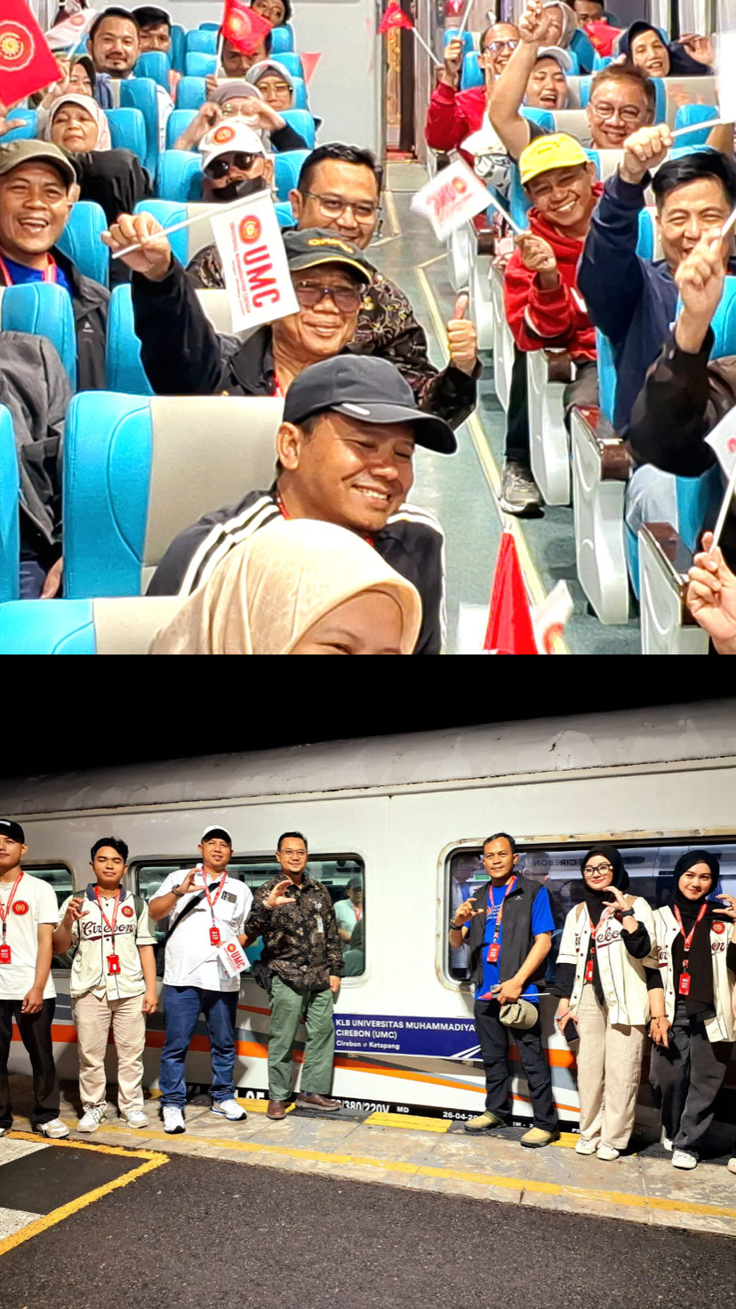 Cirebon – Rombongan Civitas akademika Universitas Muhammadiyah Cirebon (UMC) melakukan perjalanan dengan menggunakan kereta luar biasa (KLB) dari Stasiun Cirebon menuju Stasiun Ketapang Banyuwangi Jawa Timur. Rombongan yang terdiri dari dosen, mahasiswa, tenaga kependidikan, serta pengurus ini akan melaksanakan kegiatan Rapat Kerja Anggaran Tahunan (RKAT) sekaligus berwisata.