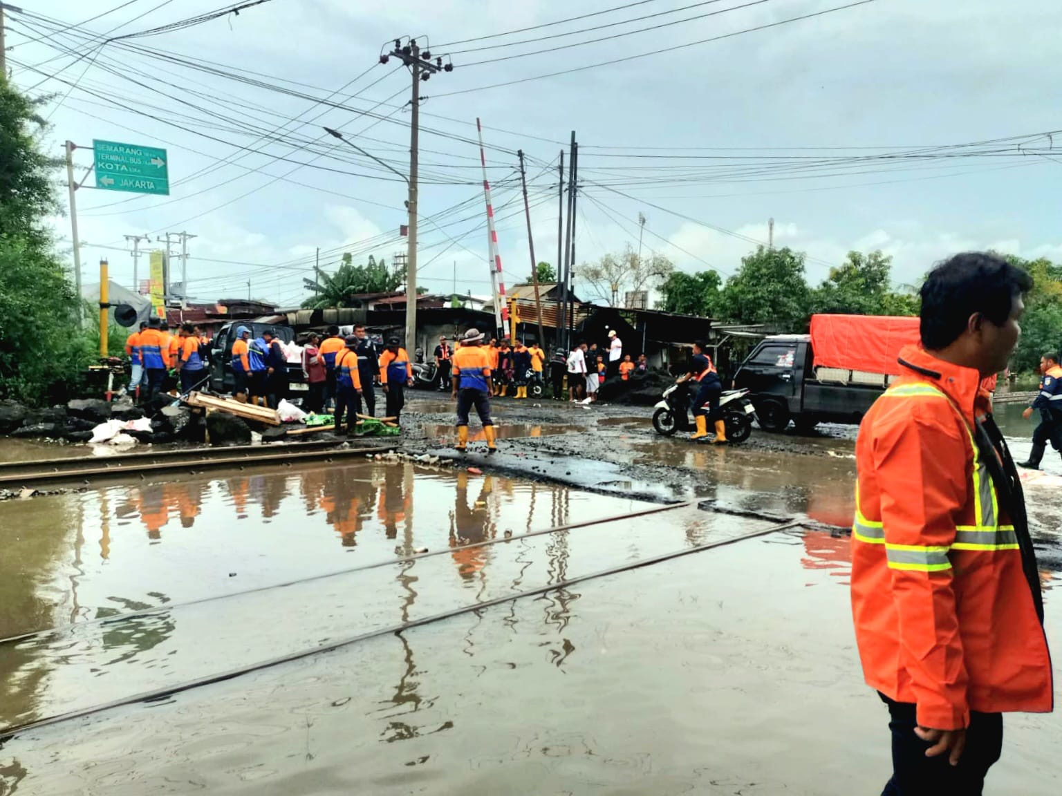 Dari hasil pemantauan di lapangan, pada Minggu pagi ini (18/1), genangan air di lokasi petak jalan Stasiun Pekalongan – Stasiun Sragi Daop 4 Semarang, kembali mengalami kenaikan dikarenakan di lokasi mengalami hujan. Sementara genangan air terjadi di beberapa titik lokasi di wilayah Daop 1 Jakarta, diantaranya di Stasiun Kampung Bandan, Stasiun Jakarta Gudang, Stasiun Jakarta Kota, dan petak jalan antara Stasiun Jakarta Kota – Stasiun Tanjung Priok.