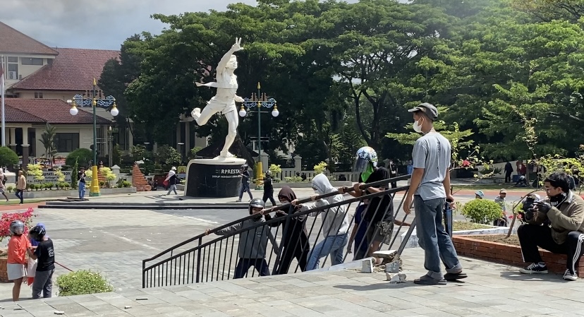 Selain merusak gedung dewan, massa merusak fasilitas publik yang ada di Taman Pataraksa Sumber seperti besi tangga dirobohkan,pot bunga dihancurkan dan dibawa oleh oknum.