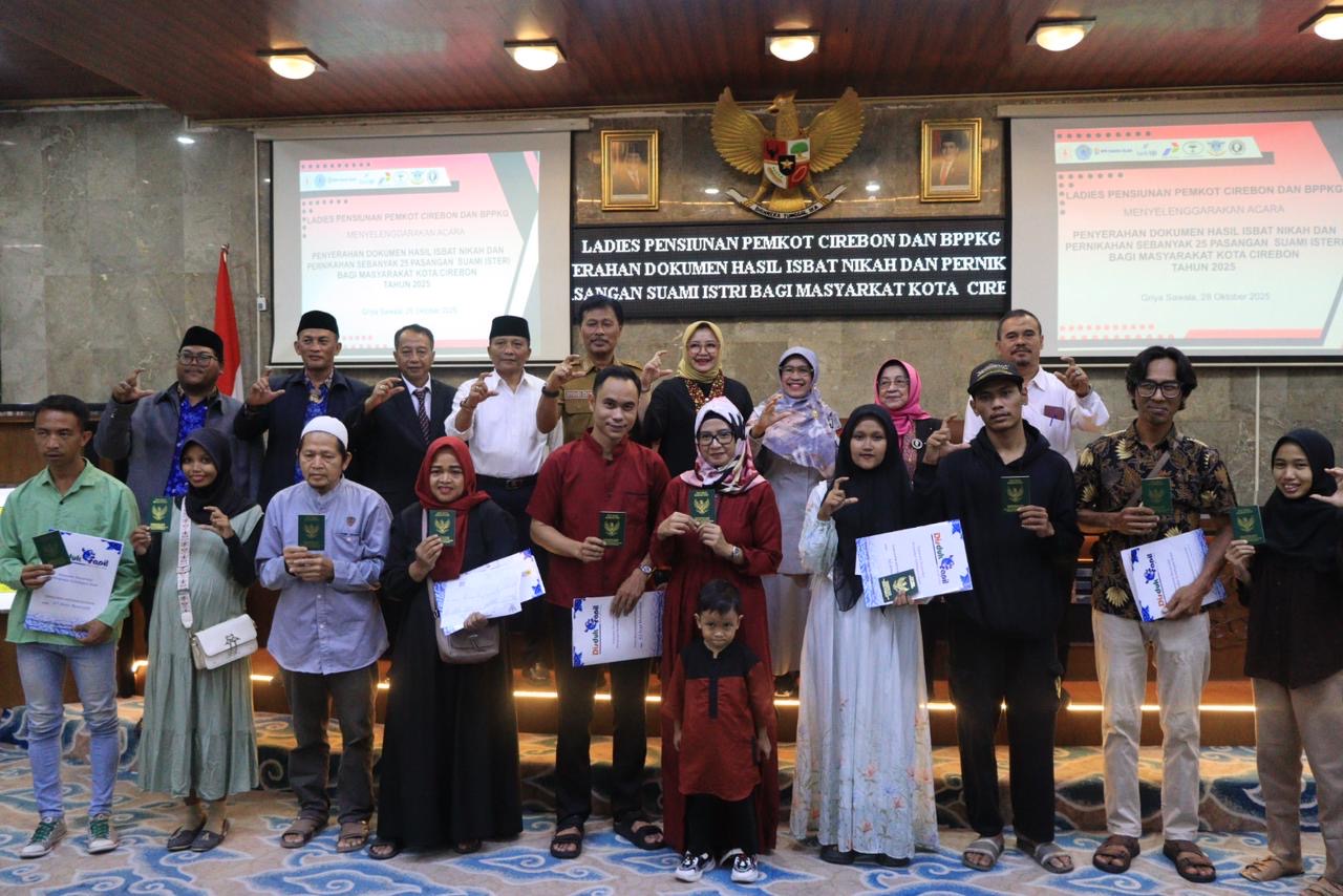CIREBON – Momen penuh makna terlihat saat acara Penyerahan Buku Nikah dan Dokumen Kependudukan yang digelar oleh Ladies Pensiunan Pemkot Cirebon (Ladies PPC) dan Bhakti Perempuan Purna Karya Grage (BPPKG) di Ruang Griya Sawala DPRD Kota Cirebon, Selasa (28/10/2025).