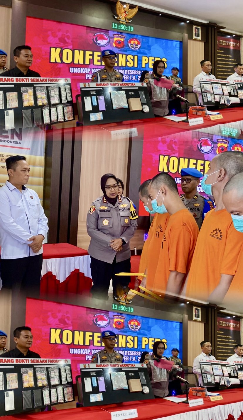 “Total ada 15 tersangka yang kami amankan, terdiri dari 7 tersangka kasus sabu-sabu, 3 tersangka kasus ganja kering, 4 tersangka kasus obat-obatan keras, dan 1 tersangka kasus peredaran tembakau sintetis” ujar Kombes Pol. Sumarni saat digelar konferensi pers.