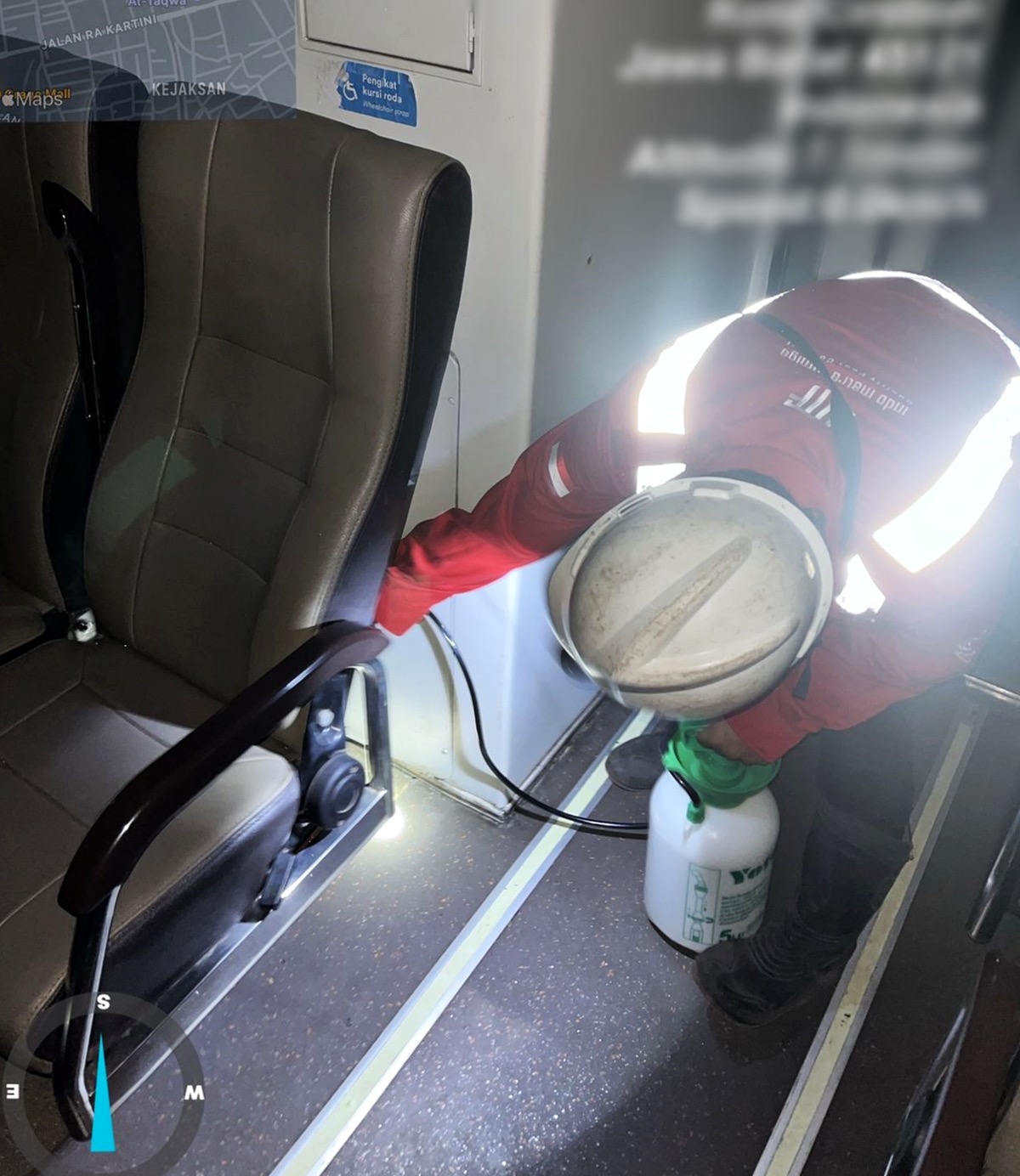 Cirebon – Sebagai wujud pemenuhan Standar Pelayanan Minimum (SPM) Angkutan Orang dengan Kereta Api, serta upaya dalam perbaikan kualitas pelayanan yang lebih baik dan berkelanjutan, KAI Daop 3 Cirebon memiliki program rutin, yakni kegiatan treatment pest control dan fumigasi dilakukan di kereta penumpang dan kereta makan untuk memberikan kenyamanan yang optimal.